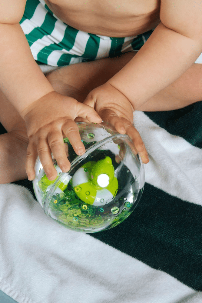 Quel bonheur de jouer avec la boule sensorielle Grenouilles de Petit Boum.