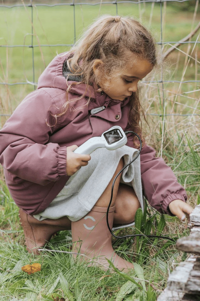 Avec son câble flexible d’un mètre, sa lumière LED, son écran intégré et sa caméra au bout du câble, les enfants peuvent observer la nature de près, explorer des recoins cachés ou inspecter des zones difficiles d’accès.