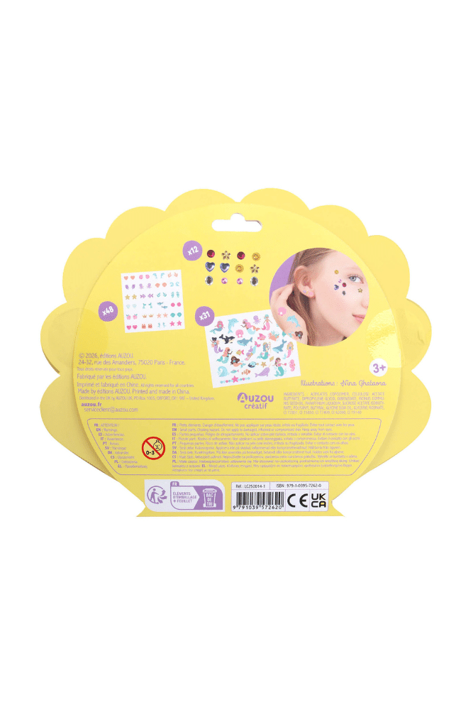 Une pochette qui propose : des strass de visage, des tattoos et des boucles d’oreilles autocollantes qui brillent !