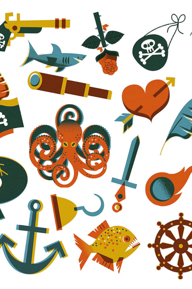 Plus de 50 tattoos sur le thème des pirates, magnifiquement illustrés par Christina Hägerfors.