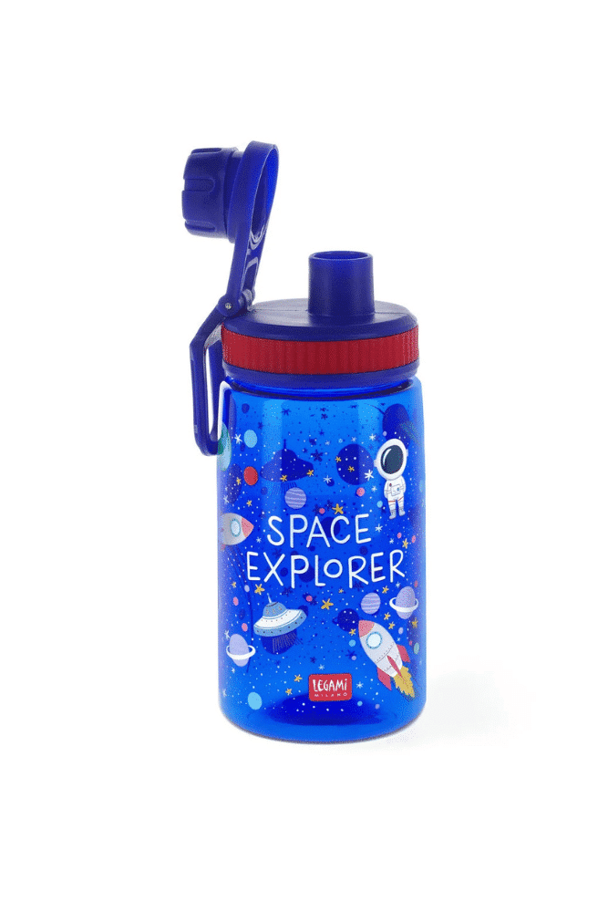 Grâce à la gourde Space de Legami, votre enfant va pouvoir boire sans catastrophe.