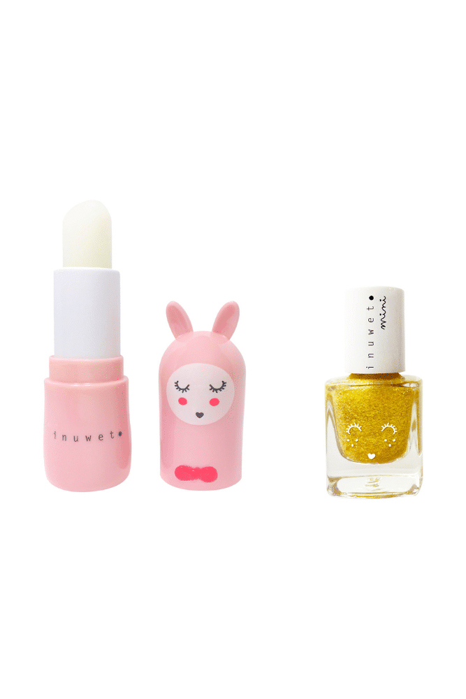 Découvrez la Maison Juliette composée d’un baume à lèvres nourrissant et parfumé à la fraise, accompagné de son vernis à l’eau pour enfant parfumé à la papaye.