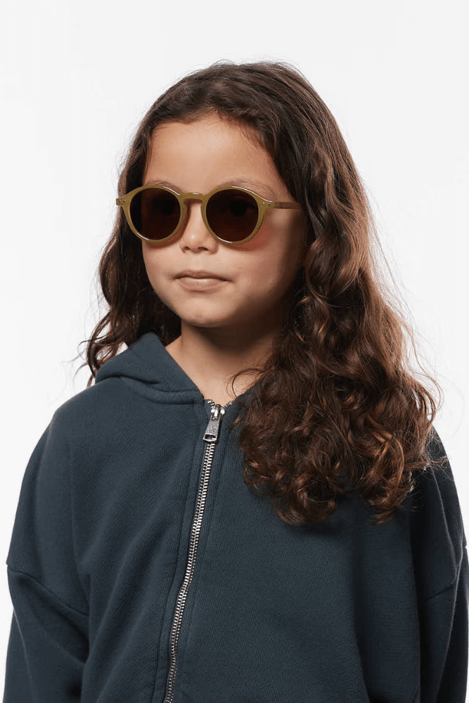 Ces lunettes de soleil enfant Olive pour les 5 à 7 ans affichent un look naturel et élégant.