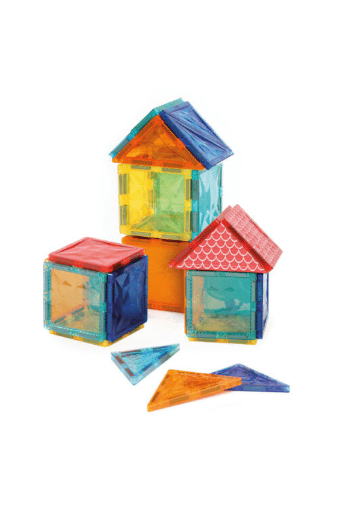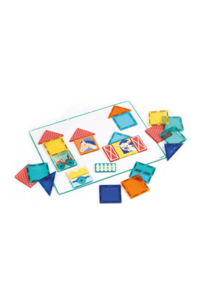 Découvrez ce panneau magnétique pour enfant avec un tableau blanc et 27 pièces aimantées, conçu pour créer des formes et structures en 2D et 3D.