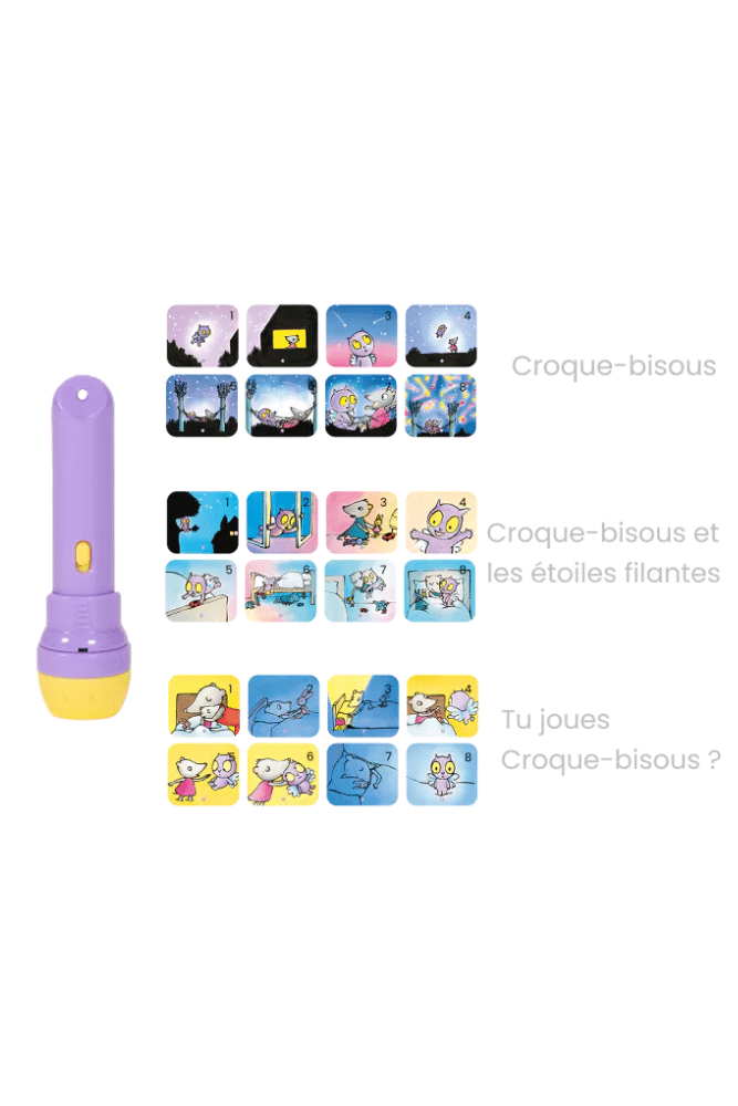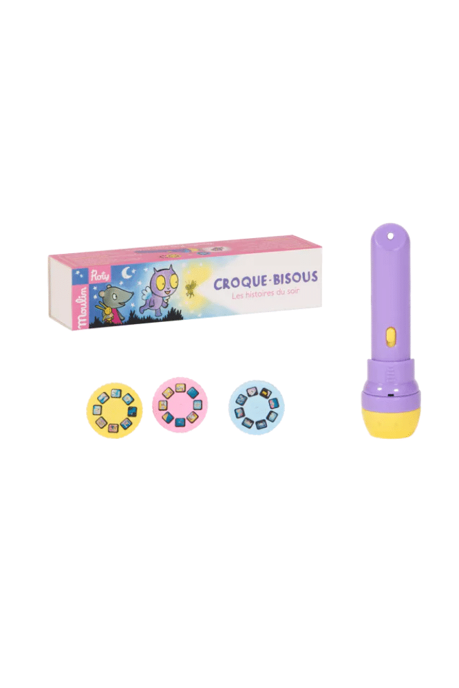 Croque-Bisous dans cette lampe à histoires où chacun des 3 disques projetés sur le mur raconte les aventures.