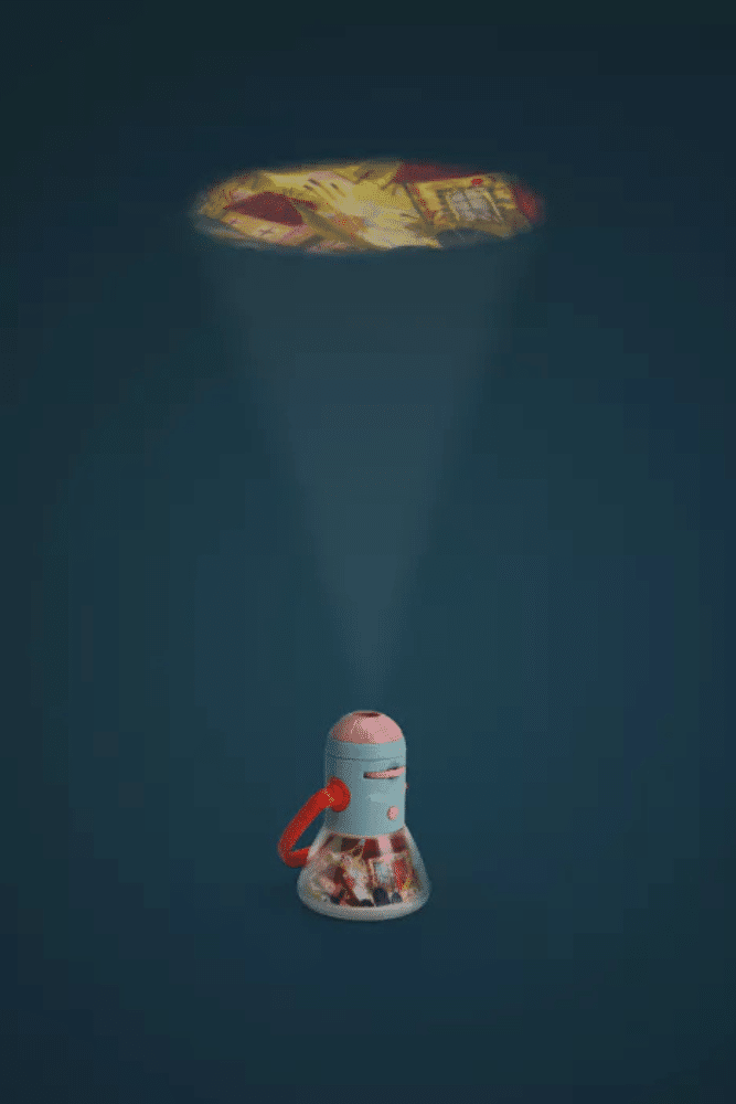 Découvrez la lanterne 3-en-1 à la fois projecteur d’histoires, d’ombres et veilleuse.