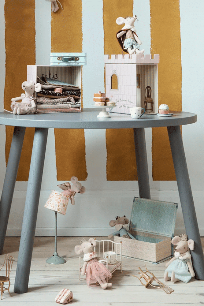 Cette petite souris grande sœur vêtue de ses plus beaux habits devient la petite princesse de la maison.