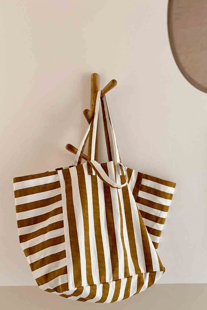 SAC CABAS ELISA | Raye Ecru – Caramel