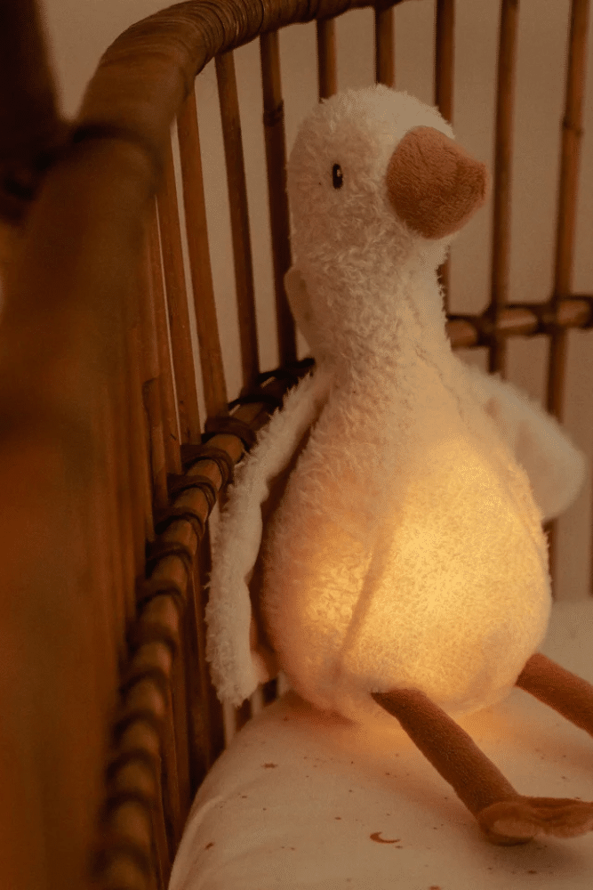 Découvrez l’Oie en version veilleuse musicale et lumineuse qui apporte réconfort et sécurité avec sa douce lueur et ses sons apaisants.